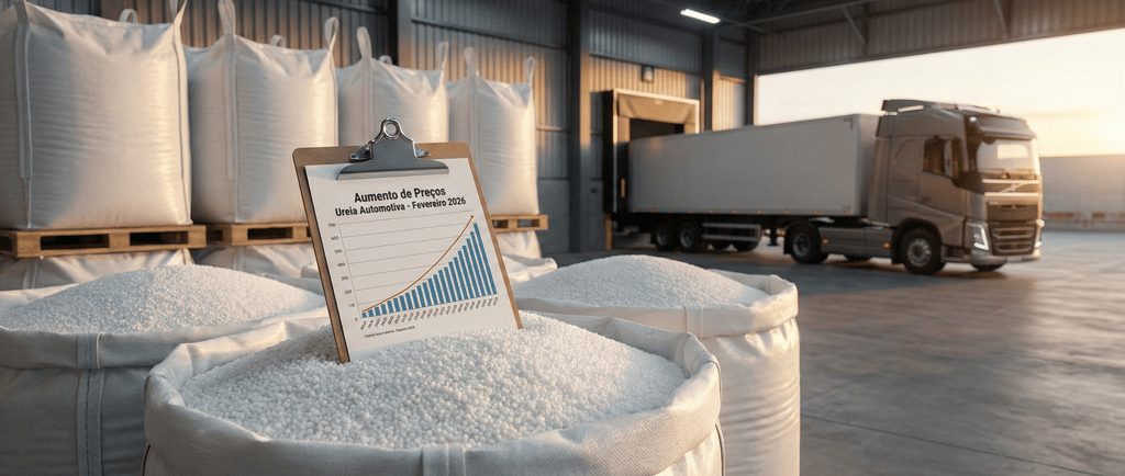 Em fevereiro de 2026, a ureia granular no mercado FOB (Free On Board) Oriente Médio operou em patamares que desafiam o planejamento logístico nacional. Para o transportador brasileiro, isso se traduz diretamente no custo do ARLA 32, que já representa uma fatia relevante dos custos operacionais, especialmente para frotas Euro V e Euro VI.